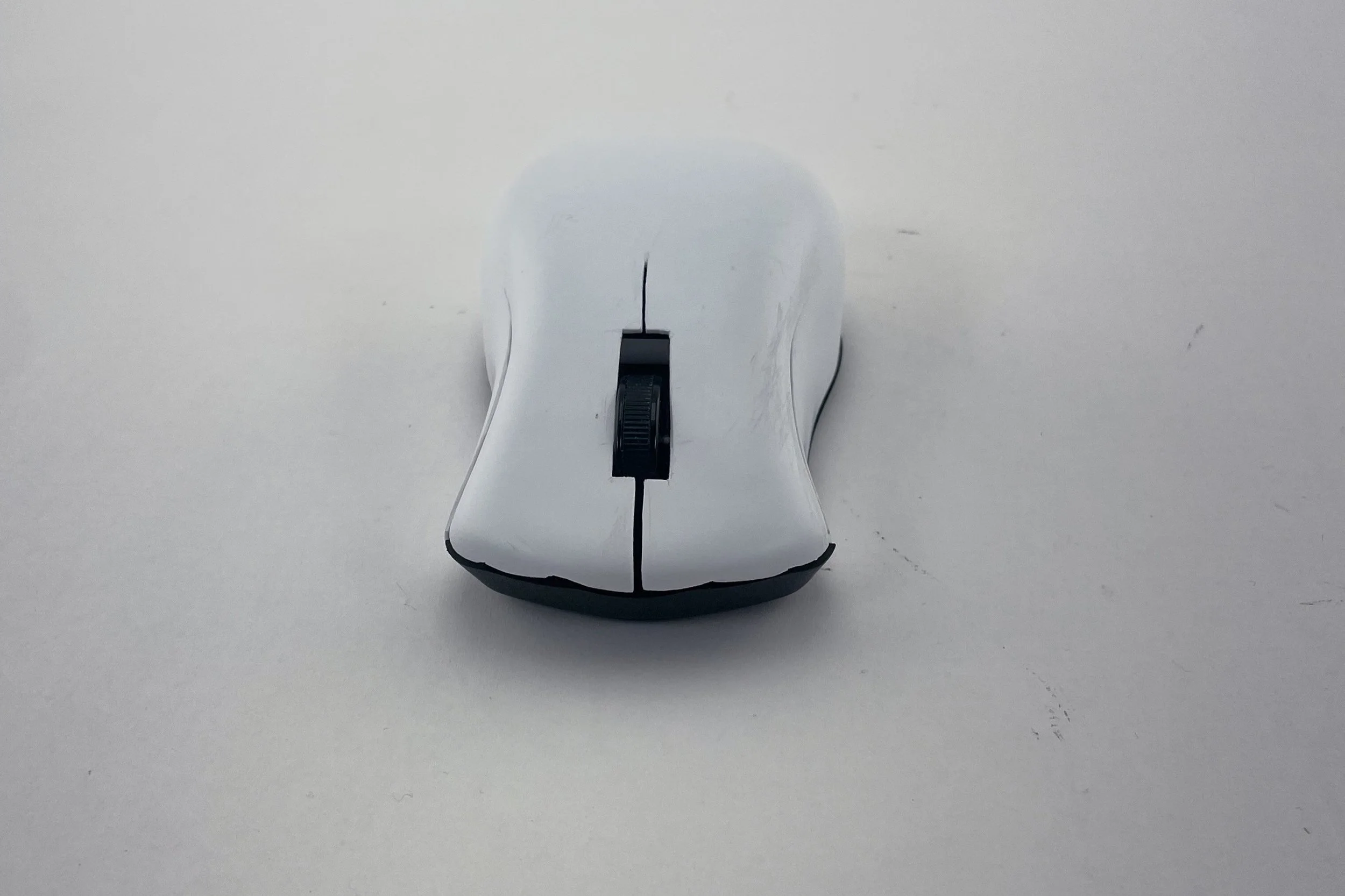 This is a computer mouse that was made by keeping the original base and electronics of a store-bought mouse, then taking off the outer shell and refitting it with a new part designed by me (in white). The new part had to be able to interact with the circuit board and feel good in the users hand leading to its sleek one piece design with cut out slits to allow movement.