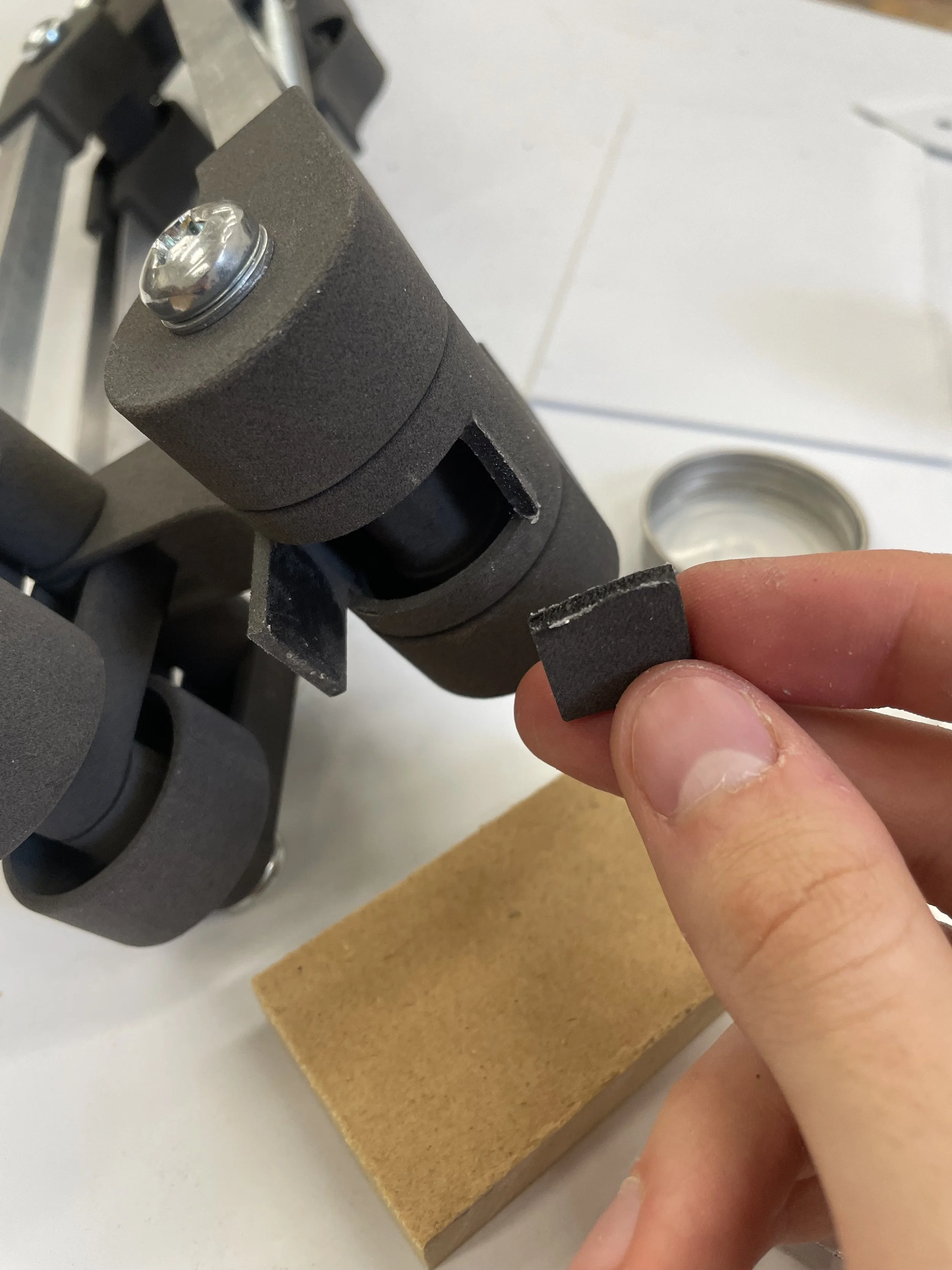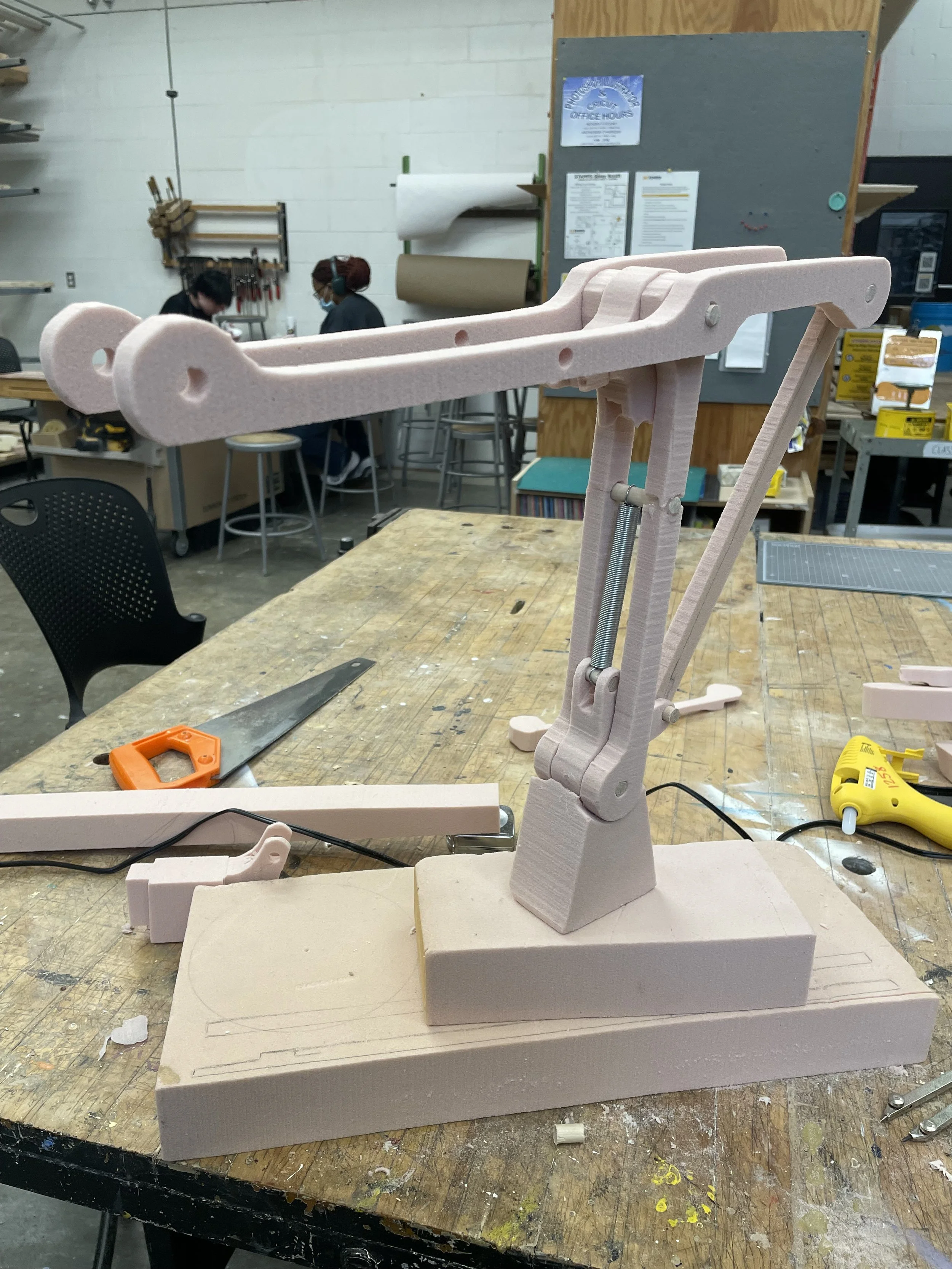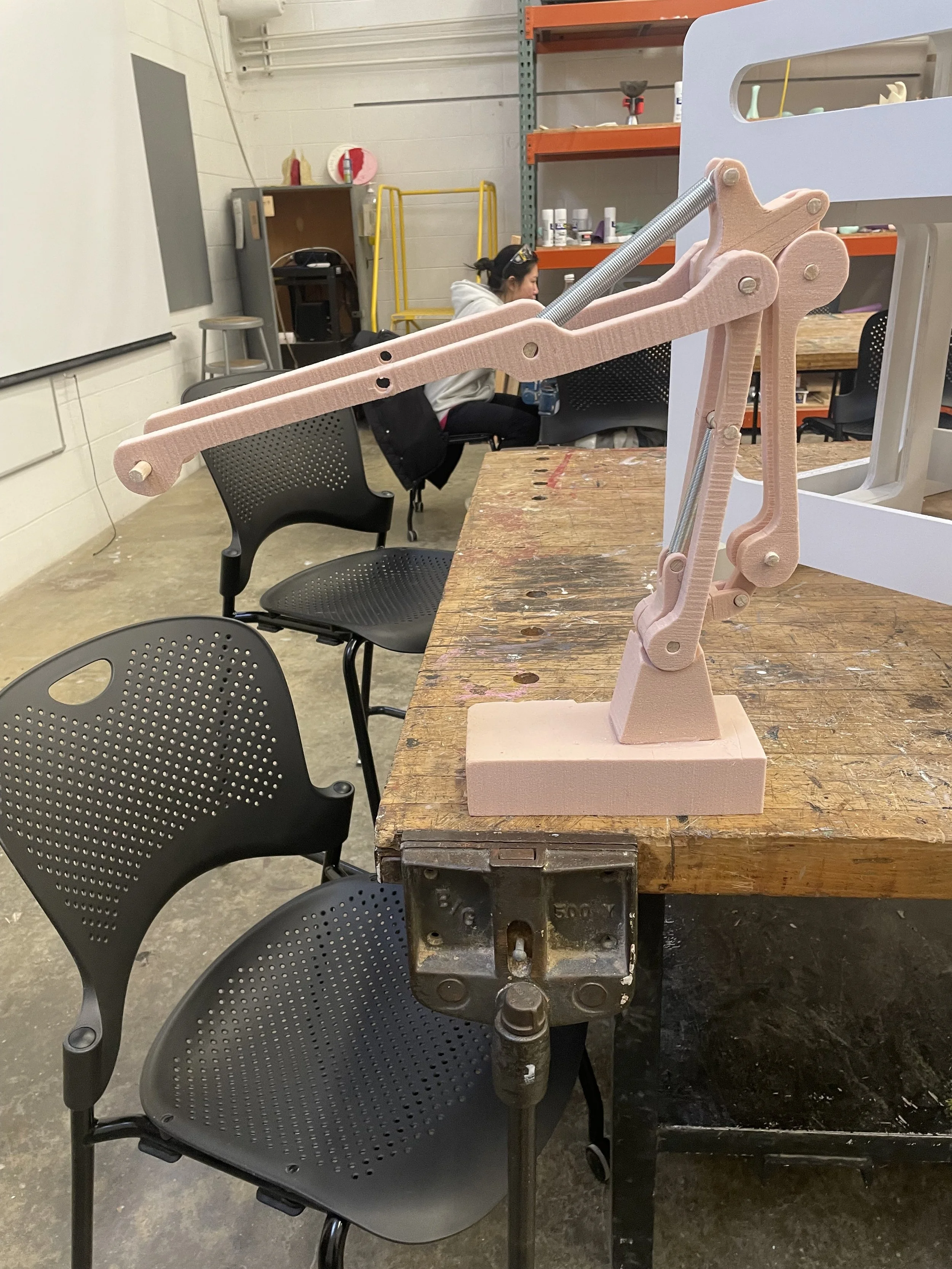 The first step with making came with making a foam prototype in the wood shop testing the mechanics experimenting with spring tension.